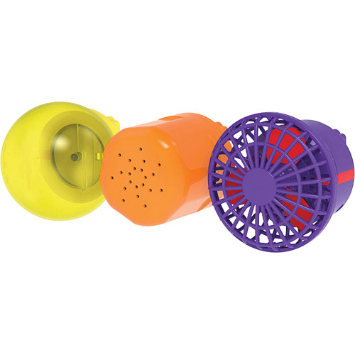 A spinning fan, a glowing light or a whistling siren. Kids will positively delight in making them happen with this introduction to circuitry. Chunky pieces are mix-and-matchable. Educational fun! Requires 6 AA batteries. From Mindware, for ages 1 1/2-6 yrs.
